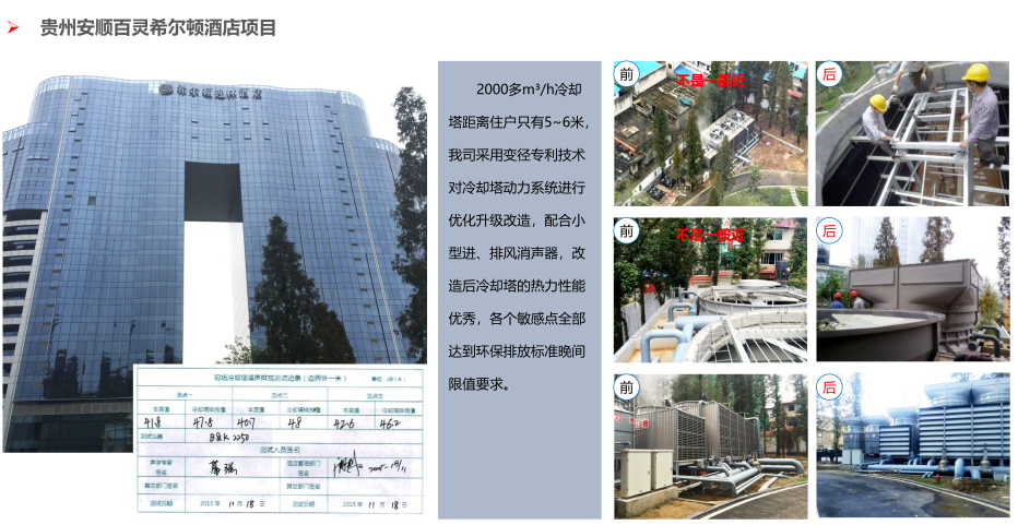 當前位置:特菱首頁 > 冷卻塔降噪 > 冷卻塔降噪案例 > 貴州安順百靈希爾頓酒店項目